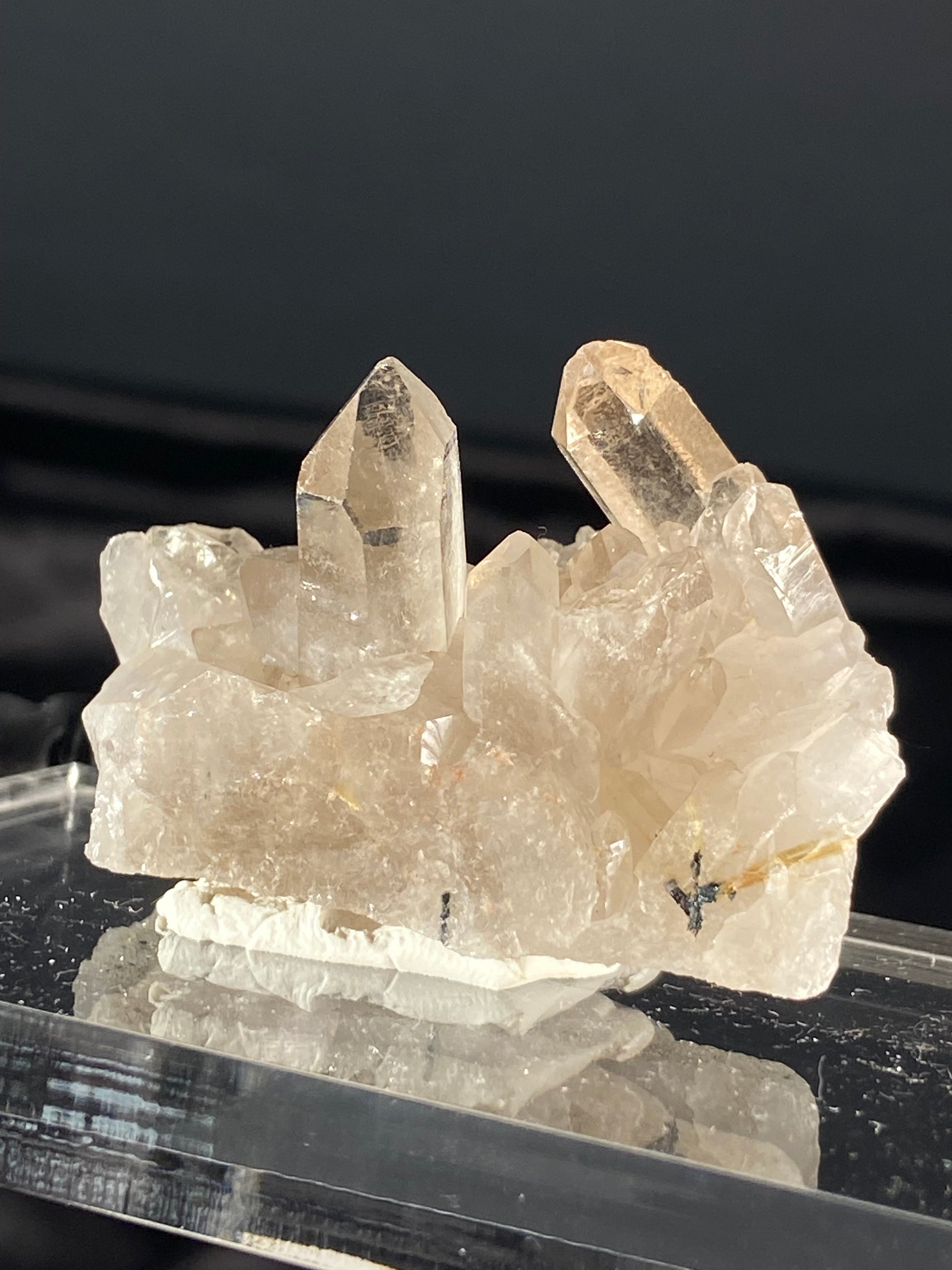 Racimo de cuarzo cristal con calcita